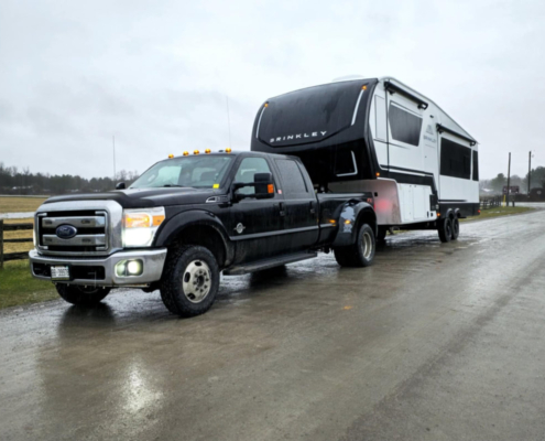 Trucks capable of transporting bumper pull, 5th wheel, pintle-hitch and gooseneck RV trailers.